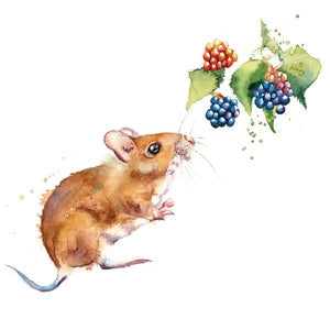 An eco friendly set of four art cards showing my love of British wildlife, one of each design hare, fox, mouse and hedgehog