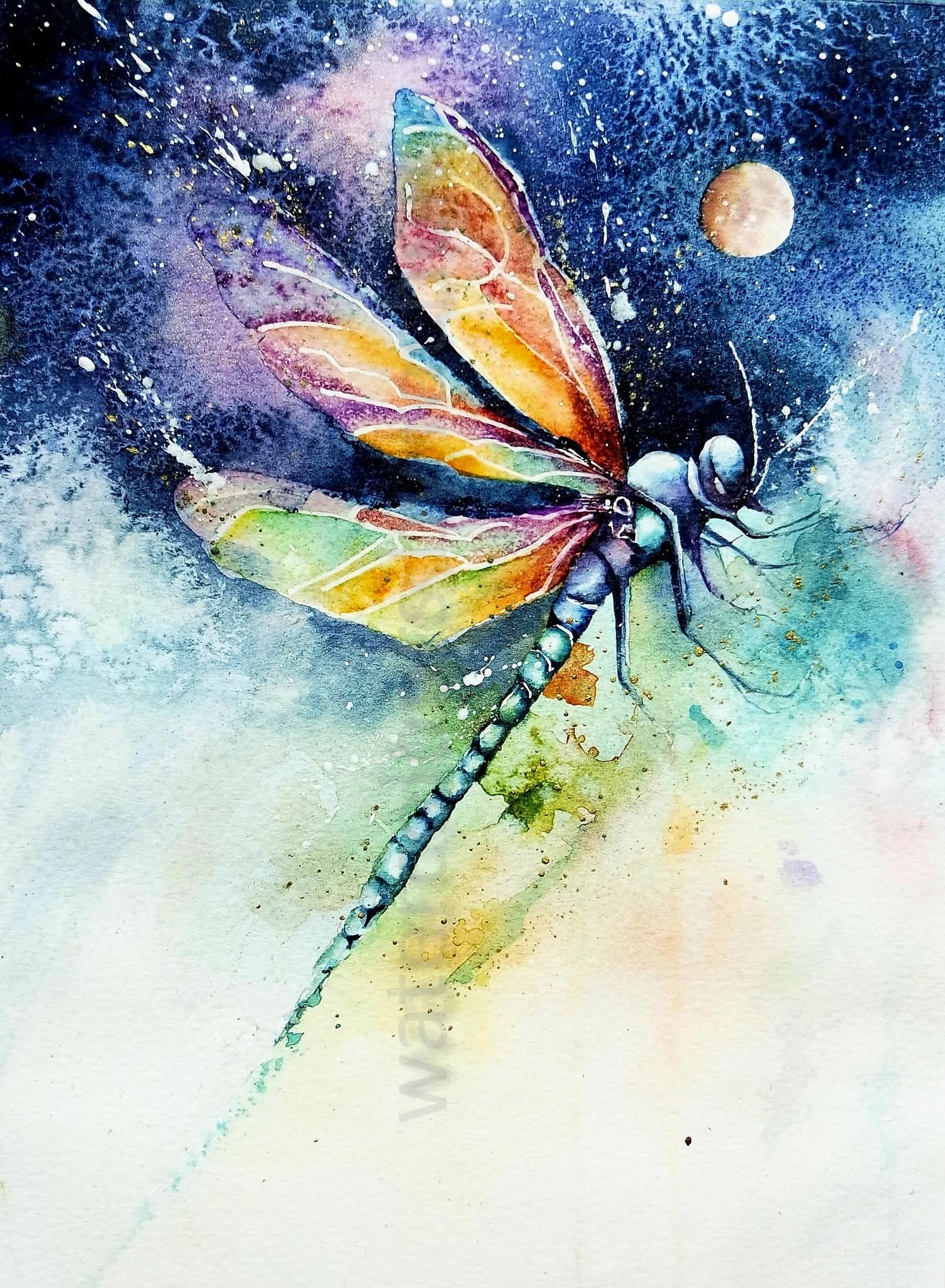 An original watercolour of a dragonfly 30cm x 21cm